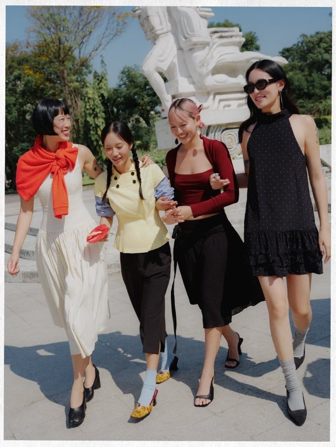 — Nhi: Chúng tôi gặp nhau khi khoảng hai mươi tuổi, khi thời trang bắt đầu trở nên là 1 phần quan trọng trong cuộc sống. Sau này thân hơn, qua những đồng điệu trong cảm xúc, câu chuyện gia đình, và âm nhạc…