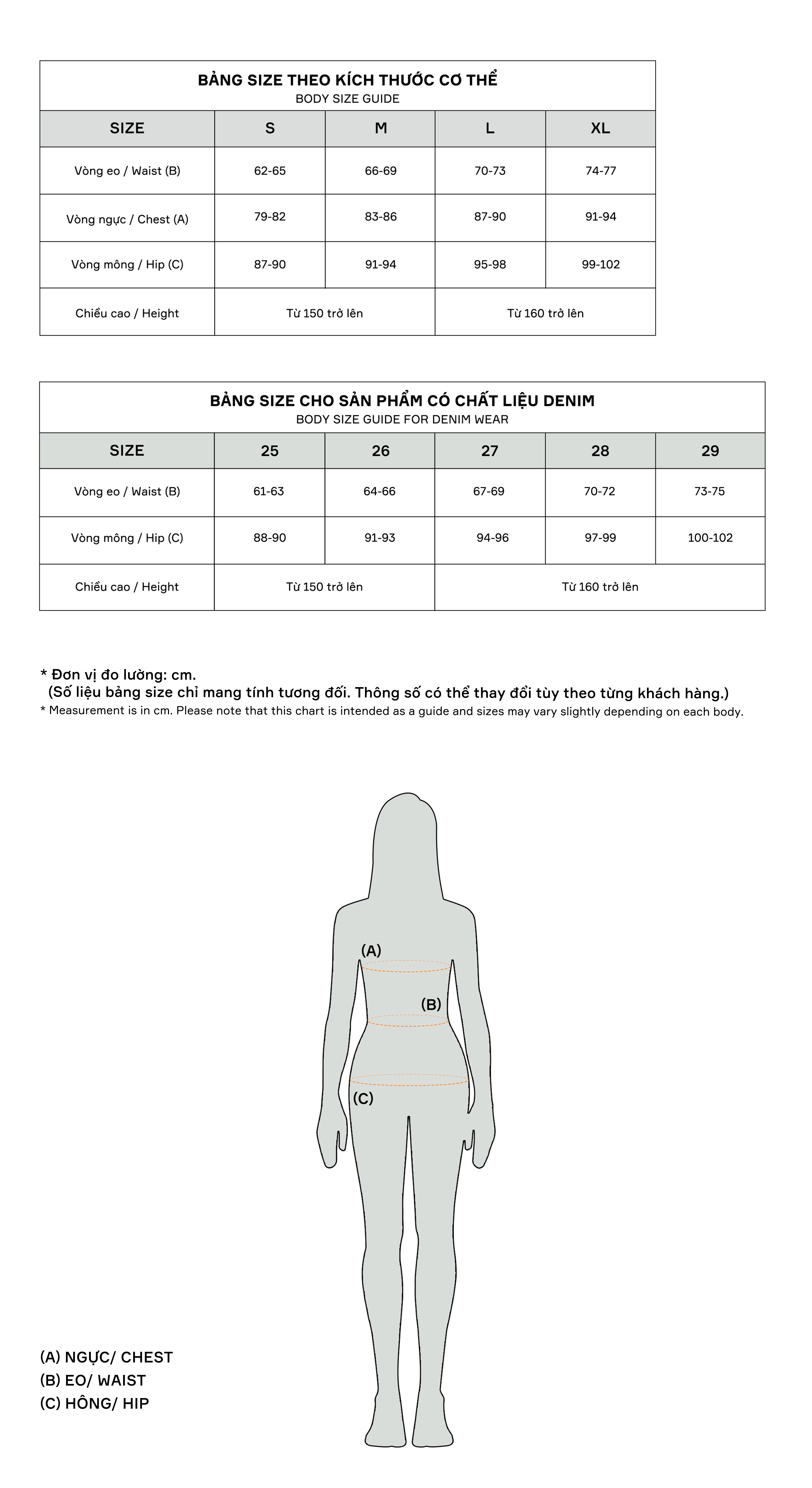 Size S: Dài 56,5cm ; Vòng ngực 58cm ; Vòng eo 63cm ; Dài dây 33cm